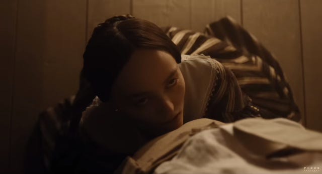 When I reflect on what I loved about this movie aside from the costumes, the unreal cinematography, DaFoe’s rat acting, the bold and relentless narrative style, and more elements than can be enumerated here without making your email run out of storage space, what lingers with me most was its use of bondage as a recurring theme. As a woman living in Victorian society4, Ellen (Lily-Rose Depp) suffocates under the many rules and expectations set for her as a woman. She’s not supposed to desire, she’s not supposed to feel. But her desire for oblivion, as embodied in Nosferatu, gives her a release from these strictures, allows her to imagine the pleasure of life without them. Before Thomas (Nichola Holt) leaves for Transylvania, Ellen confesses her dark dream: