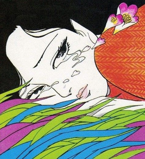 IRIS: I recently posted these pictures, and found myself still thinking about them. It’s a series of illustrations by a Japanese artist called Kazuo Kamikura. Tears turn into petals; how poetic!