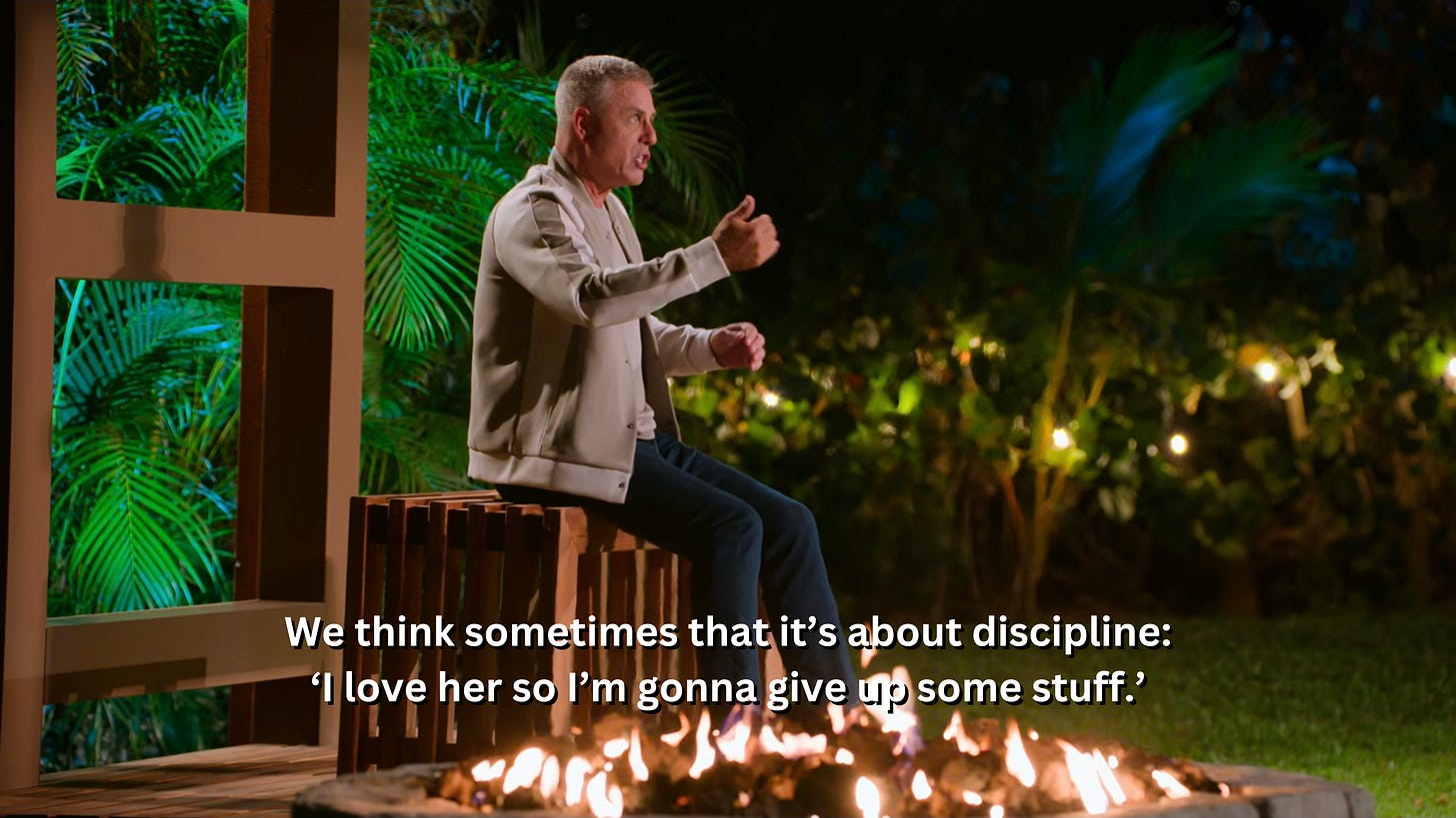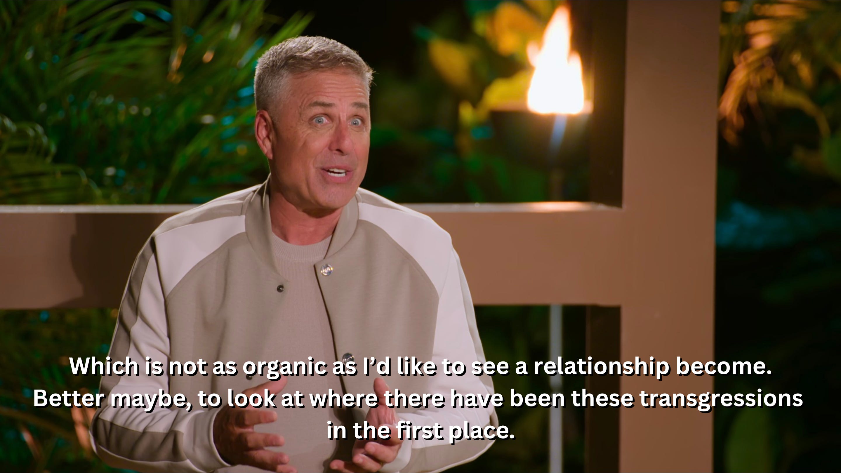Four couples start their journeys on the island wondering if their partners can be faithful in the face of temptation. The couples split into separate villas by gender and live with twelve smokin’ hot members of the opposite sex. Their every transgression is recorded for their partners to see, and played back at the ‘bonfires’ that punctuate their progress on the show. This is where Mark L. Walberg is set loose upon them with insightful questions and metaphors that land like nuclear bombs on the simpletons that have signed up for this.1