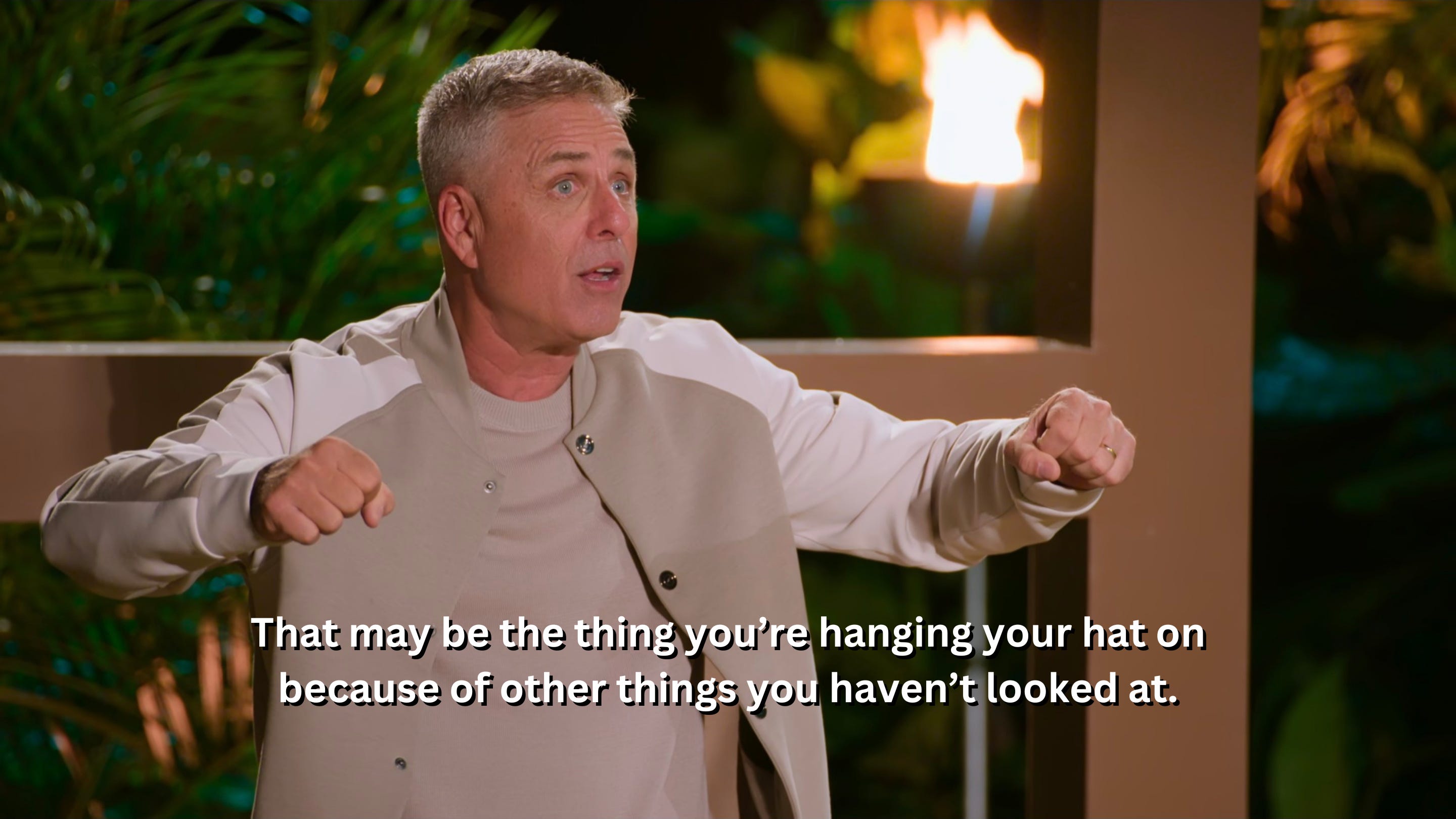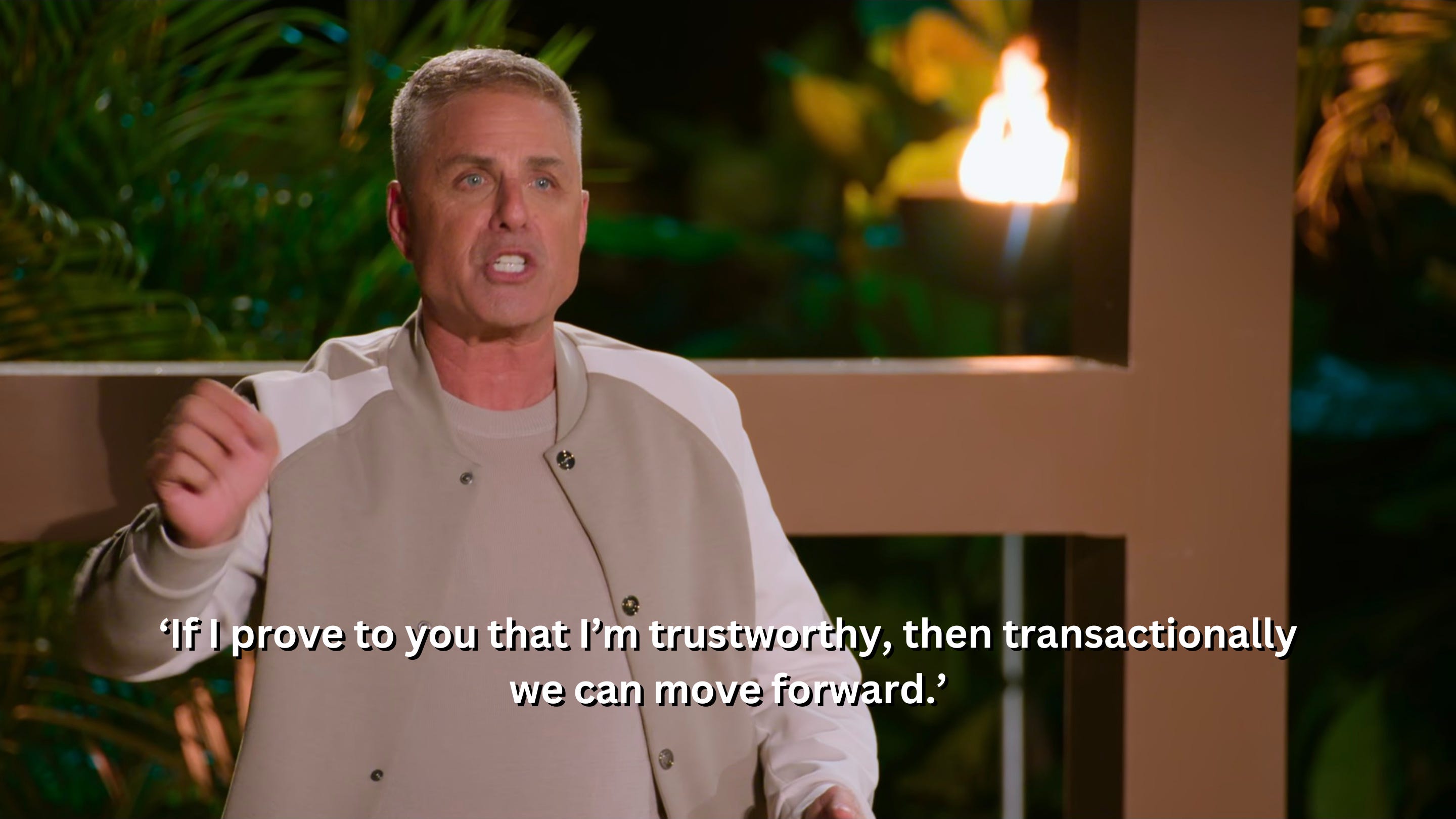 Tyler is treated at the bonfire to a video of his girlfriend Tayler venting to one of the men in her villa about how he has been unemployed for a year and living in her house without contributing financially. Listen, it’s a tough economy. But he also won’t put the toilet seat down and she feels disrespected by this. In turn, Tyler feels it’s very disrespectful of her to feel disrespected by his disrespectful behavior. Let’s go, Mark.